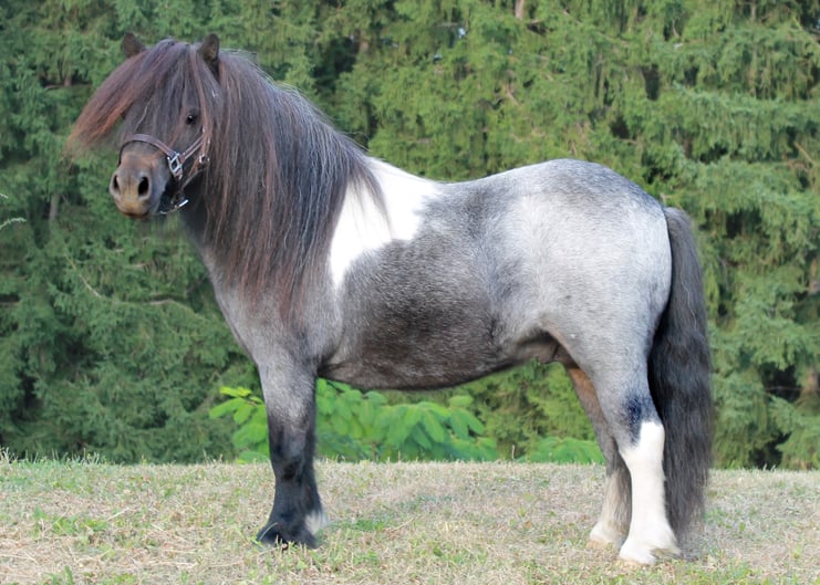 Farbe: Blue Roan and White - Ee, aa, To/to, rn/Rn